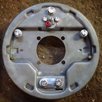 '39-48 Ford Lockheed-type backing plate converted to self-energizing Bendix-type. I'm still doing these on a regular basis.